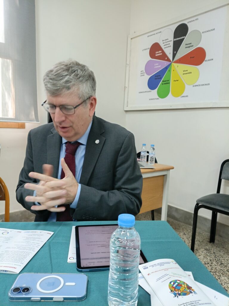 Nous avons eu l’honneur d’accueillir M. Jean-Philippe Thouard, Directeur régional de l’AUF Afrique du Nord, ainsi que M. Abderrahim Anouar, doctorant chercheur à l’Université Hassan II de Casablanca. L’intervention de M. Jihad El Hariri, enseignant de français à l’École Maison d’Anfa, a également marqué cette matinée en mettant en lumière l’importance du français comme langue de lien et d’ouverture.